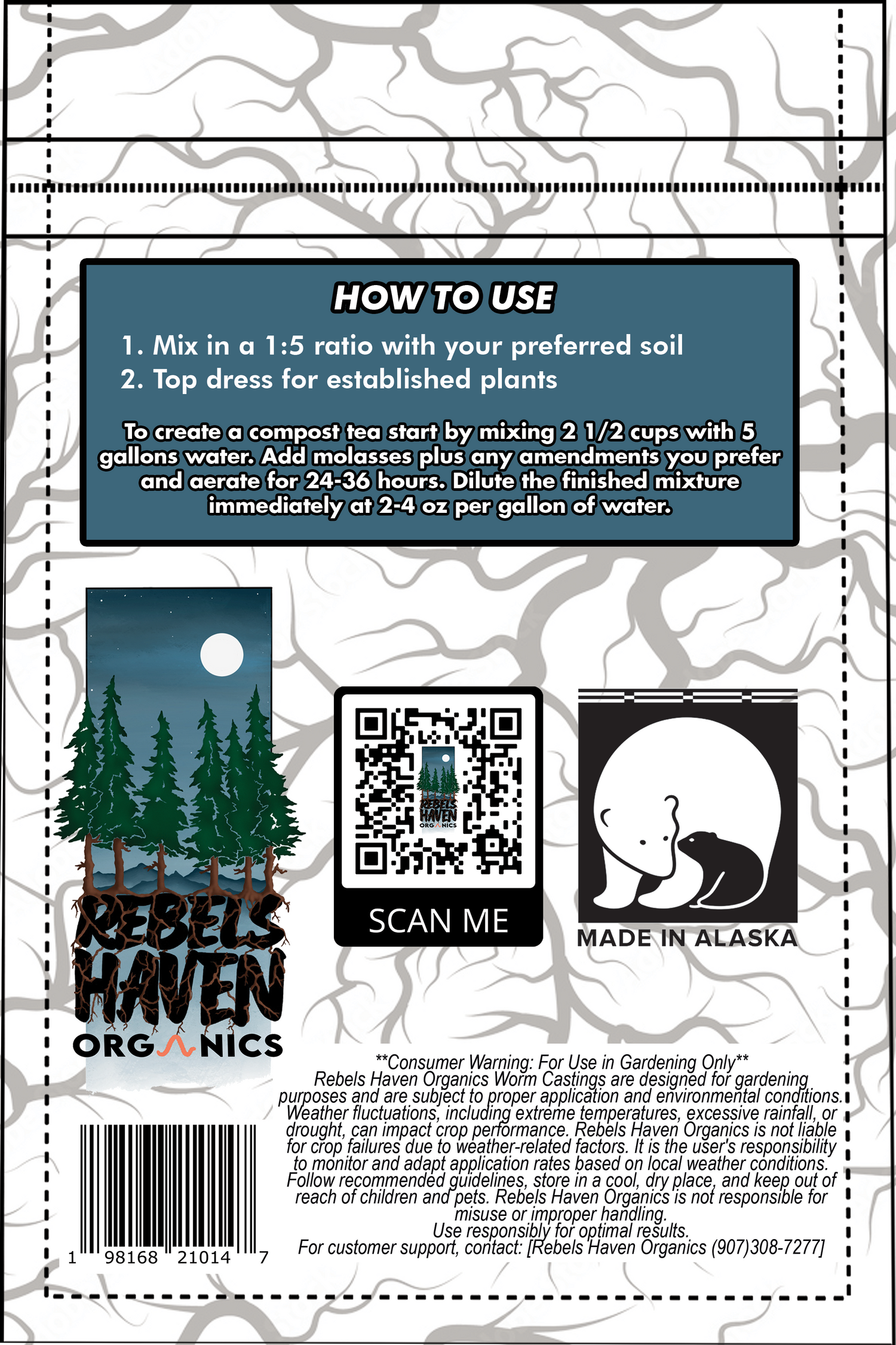 Rebels Haven Organics is a veteran owned, USA based company located in Meadow Lakes, Alaska.  We work hard to deliver top-quality Living Soils and Worm Products to keep your home, lawn, & gardens green and safe. All of our products have a 100% satisfaction guarantee.